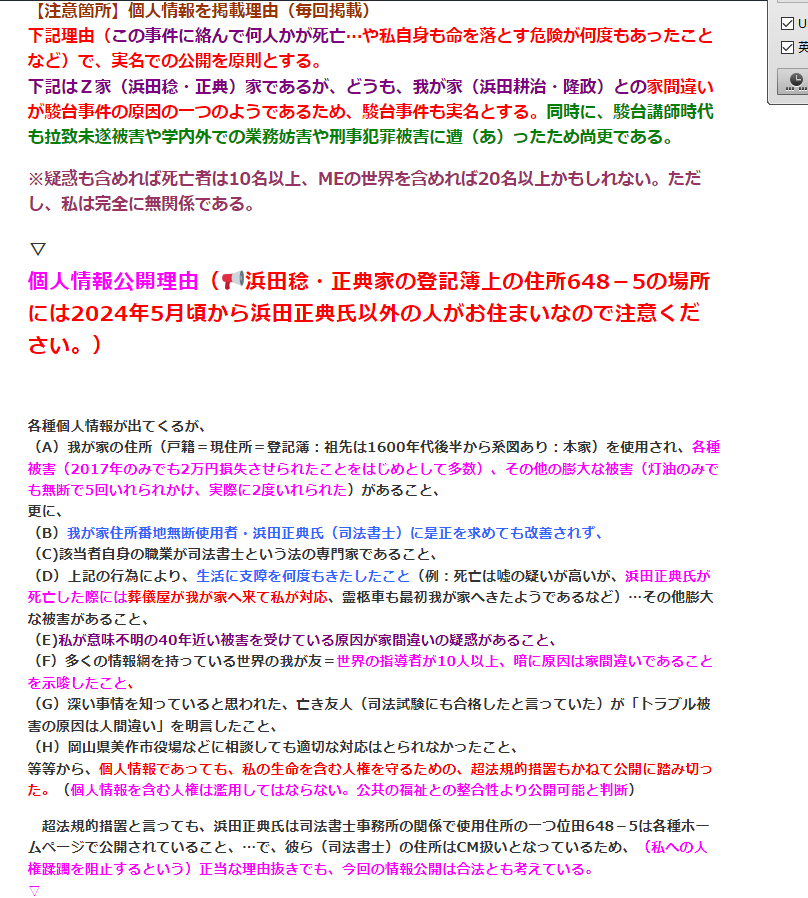 また、この③番には裏の宝…家以外にも千代子家、アケミ氏、村人による被害状況も録音していた。催眠被害は宝…家のみではない悲惨な状況がある。更に工作は(映画説とう大義名分の下)で位田自治会ぐっるみでおこなわれていた疑惑が高い。更に、美作市…も一部協力となっている。別に企業などへの人身売買被害疑惑もある。政治家の悪用もあった。私の人生もあとわずか…のみ強調しておく。