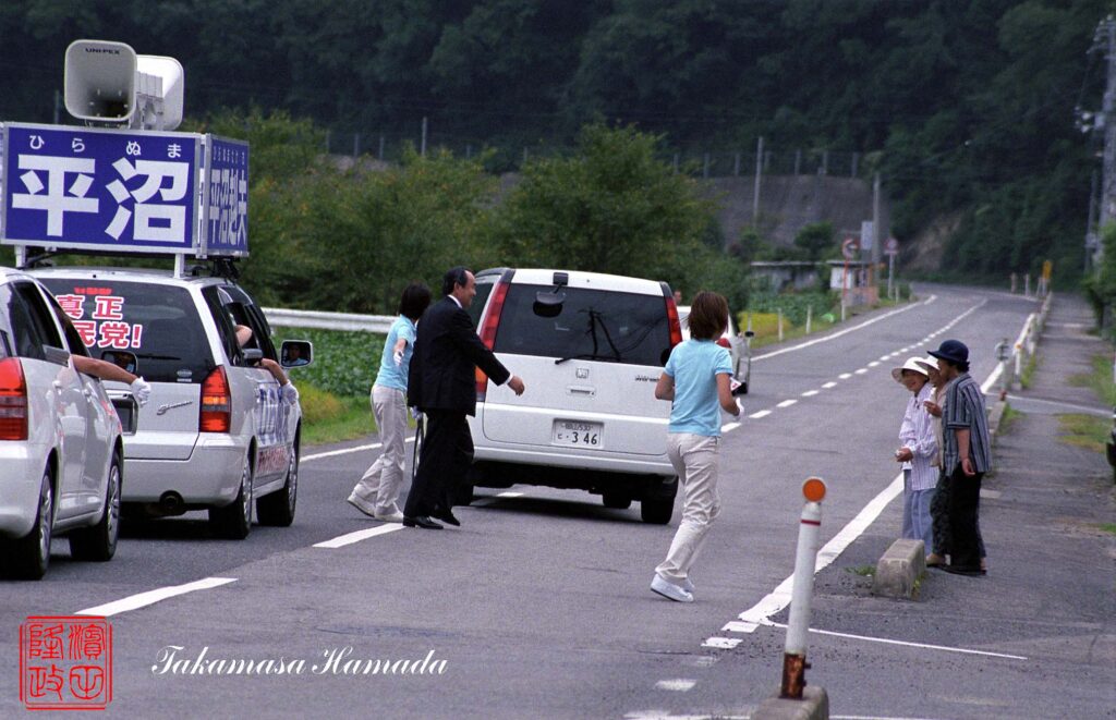その後に党派中立・宗派中立となり小泉純一郎、与謝野馨氏等…を記載している。近所のボス…で平沼赳夫写真も何故か撮らされ掲載…。